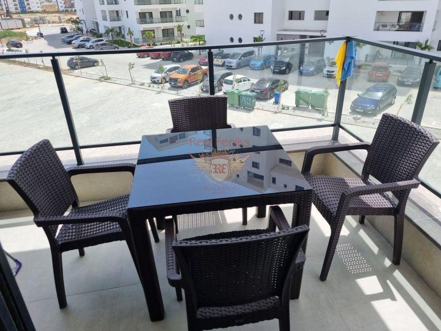 Rooms: 2Living space: 54 m2Эта новая квартира — идеальный выбор для тех, кто хочет жить в современном и комфортабельном доме. При входе в квартиру вы попадаете в просторную кухню-гостиную, которая словно созданна для встреч и уютных вечеров, впечатляет панорамными окнами от пола до потолка, заполняющими пространство светом и открывающий завораживающий вид. В ней вас ждут высокотехнологичная бытовая техника от Bosh, включая электрическую плиту, духовку, микроволновую печь, чайник и холодильник, призванные облегчить ваши кулинарные эксперименты. Из кухни-гостиной открывается балкон, где вы можете расслабиться и насладиться свежим воздухом, любуясь видом на город. В спальне вы найдете шикарную двуспальную кровать. Просторный шкаф обеспечит вам достаточно места для хранения вашего гардероба. Ванная комната, облицованная керамической плиткой, оформлена в современном стиле и оснащена душевой кабиной, умывальником и унитазом. Квартира находится в развитом районе с хорошей инфраструктурой. В пешей доступности есть магазины, кафе, рестораны, школы и другие необходимые объекты. Квартира подходит для постоянного проживания, отдыха или сдачи в аренду. 5 минут езды до Собора Святого Николая 40 минут до аэропорта Эрджан 50 минут езды до Никосии 60 минут до аэропорта Ларнака Details
