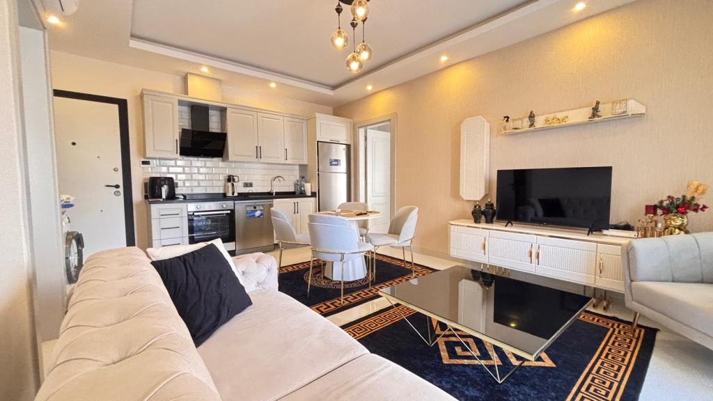 In Alanya’s popular district of Oba, a comfortable and fully furnished 2+1 apartment!This stylish apartment, with 75 m² of living space, is located on the 1st floor of a 4-story building. Enjoy the serenity of the mountain view while being only 1200 meters from the sea.
