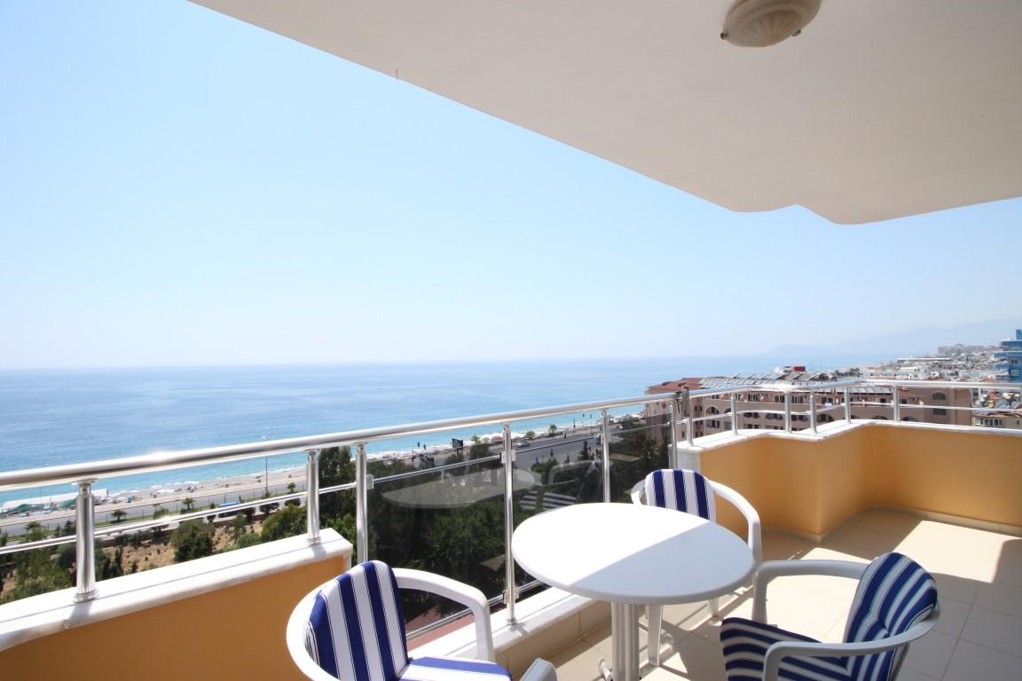 Прямой панорамный вид на море, горы, Аланию и крепость