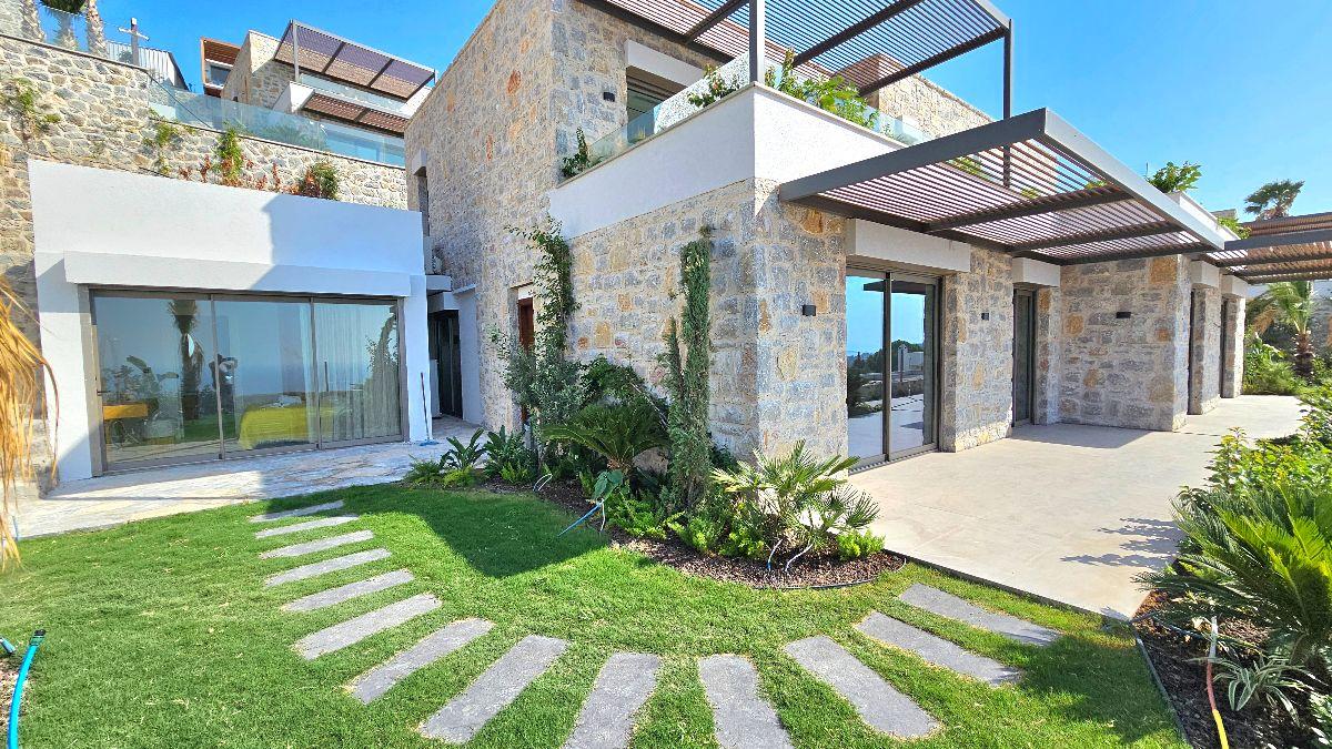 Новая квартира 3+1 на первом этаже с собственным садом и видом на море в Бодруме, Ялыкавак.