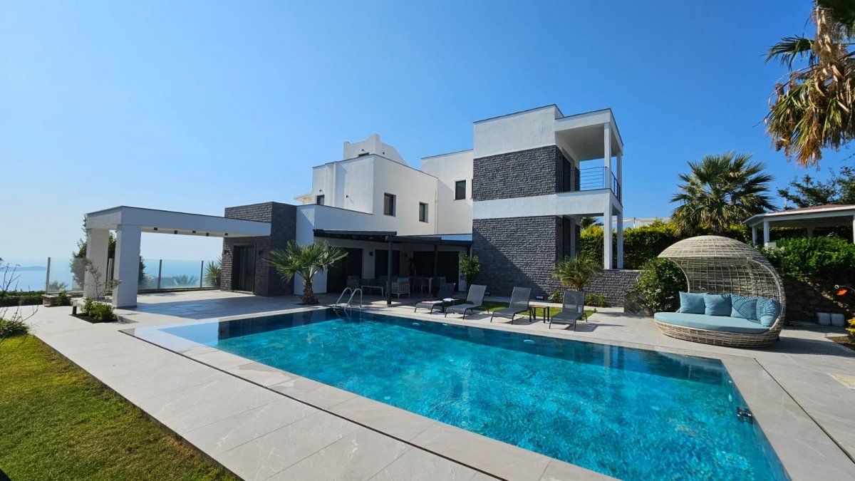 Продается отдельная вилла на участке 1 600 м² с приватным бассейном и панорамным видом на море в Ялыкaвак, Бодрум.