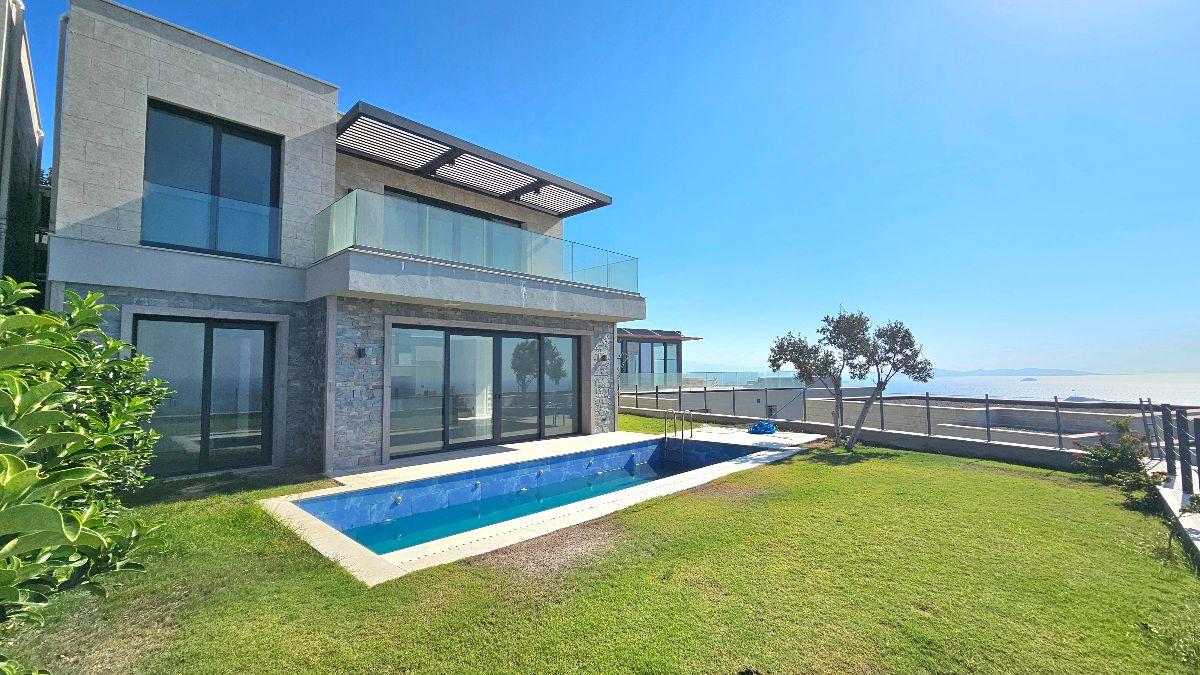 Просторная современная вилла 4+1 с частным бассейном и большим садом расположена в охраняемом комплексе в районе Гюмюшлюк, Бодрум.
