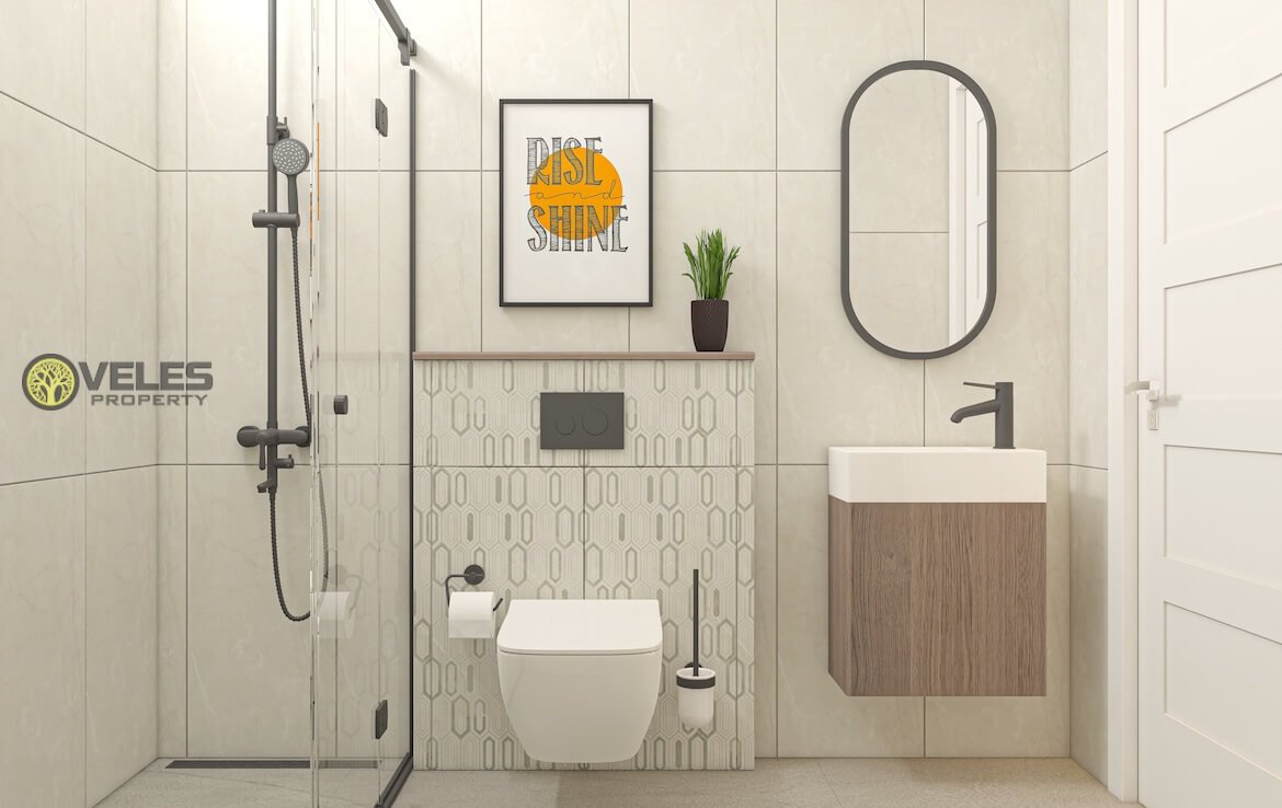 Застройщик при строительства использует самые качественные материалы. В квартирах уже встроены глянцевые шкафы и алюминиевые окна с двойным стеклом. Керамическая плитка и сантехника 1 класса. К тому же, в зданиях встроена инфраструктура кондиционирования воздуха.