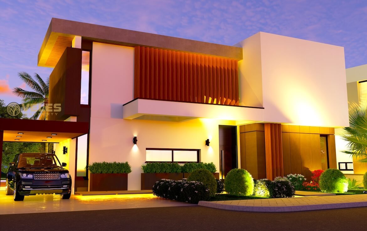 Планировка вилл современная, отдельная кухня, отдельная гостиная и одна спальня на первом этаже. Много мест для хранения, для каждой спальни свой санузел. На втором этаже три спальни прачечная комната, а хозяйская спальня не только с санузлом но и с гардеробной комнатой. Не стоит забывать про шикарные виды с панорамных окон спален второго этажа. Выход к бассейну осуществляется также с панорамных окон гостиной и кухни. Для удобства хозяек раковина кухни размещается под специальным окошком.