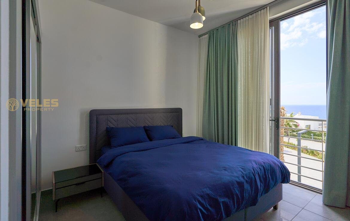 Апартаменты включают просторную террасу с панорамным видом, две спальни и два санузла, выполнены с чистовой отделкой и встроенной мебелью.