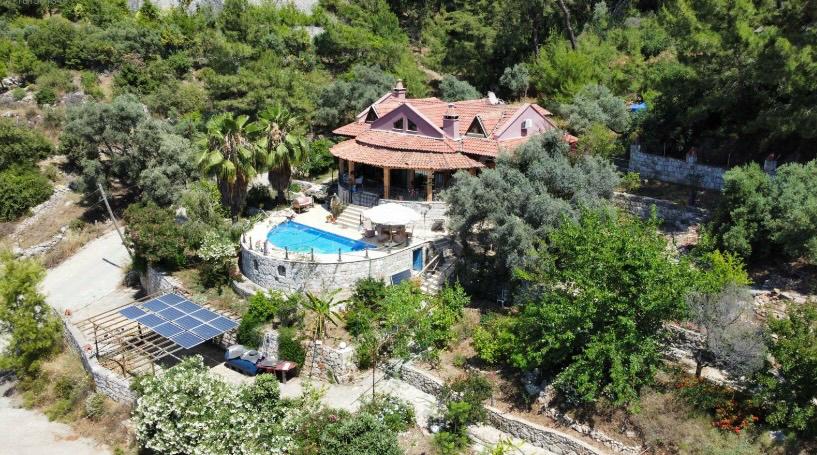 Faralya Kızılcakaya mahallesinde, 1930m2 bahçe içinde, havuzlu 4 oda, 3 banyo villa.